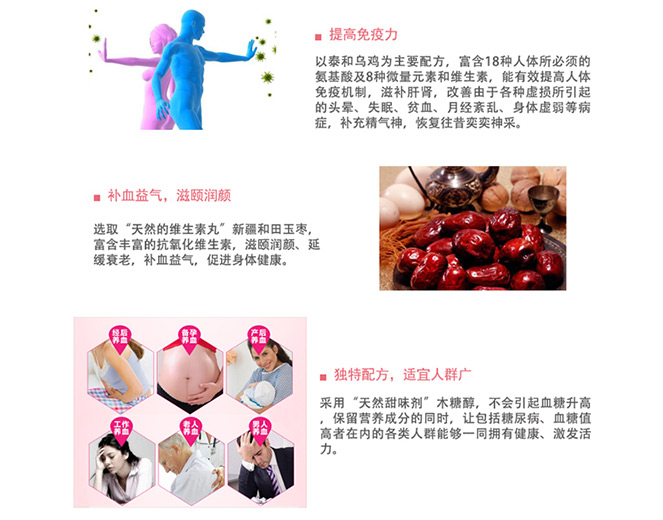 富含人體所需多種營養成分,有效提升人體免疫機能,改善營養性貧血