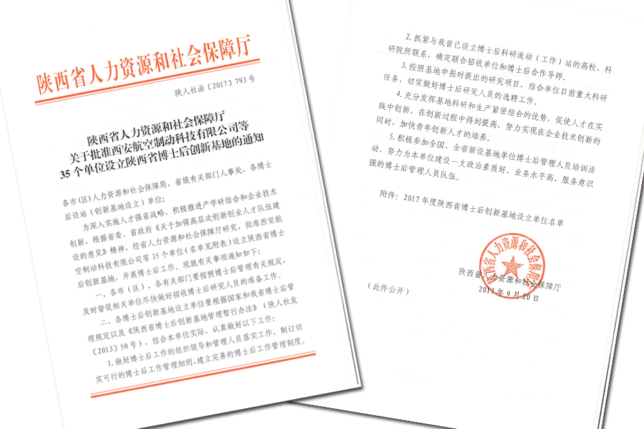 陜西省人力資源和社會保障廳發布了2017年陜西省博士后創新基地名單文件