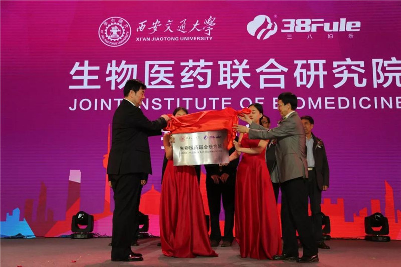 西安交通大學黨委副書記趙軍武和三八婦樂集團董事長袁曉峰共同為生物醫藥聯合研究院揭牌