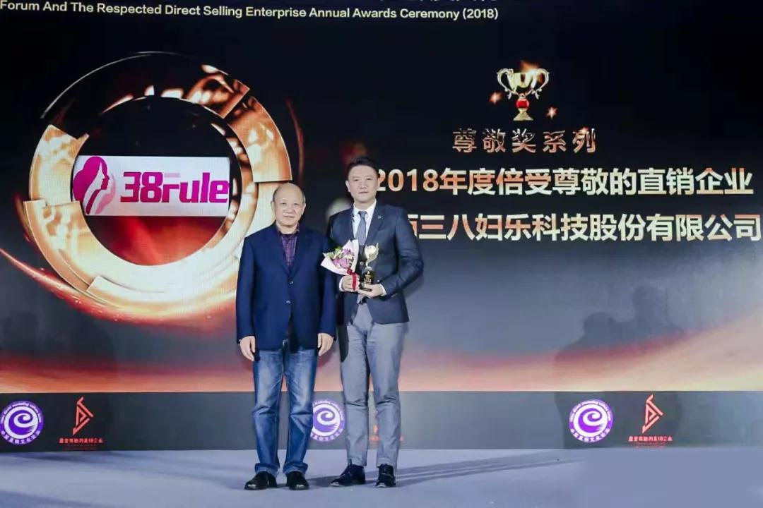 三八婦樂(lè)以其長(zhǎng)遠(yuǎn)的戰(zhàn)略發(fā)展目標(biāo)、重質(zhì)守信的光輝企業(yè)形象榮獲第11屆(2018)中國(guó)直銷文化論壇頒發(fā)的2018年度倍受尊敬的直銷企業(yè)獎(jiǎng)。陜西三八婦樂(lè)科技股份有限公司總裁李南以其良好的社會(huì)口碑和獨(dú)特的人格魅力榮獲第11屆(2018)中國(guó)直銷文化論壇頒發(fā)的2018年度倍受尊敬的直銷總裁獎(jiǎng)。